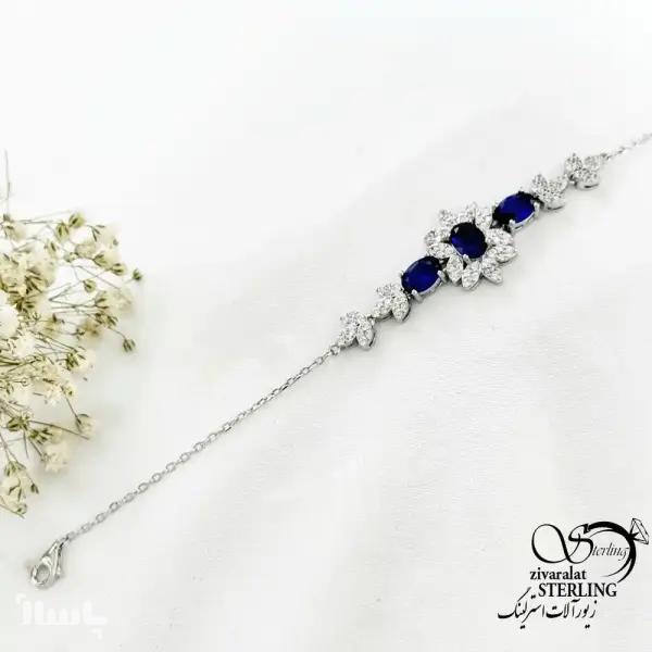 دستبند نقره ایتالیا طرح یاقوت کبود کد 20329