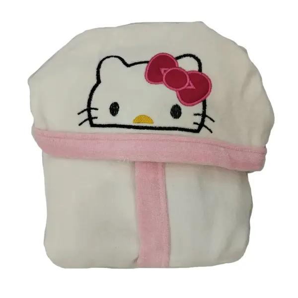 حوله پالتویی مدل «کیتی» (Hello Kitty) سایز 70، محبوبترین انتخاب برای دختران 4 تا 6 سال است. طرح گربه مهربان کیتی روی این حوله، حس لطافت و دوستی را منتقل میکند. این تنپوش کلاهدار، بلافاصله بعد از حمام بدن کودک را گرم کرده و موهای خیس را خشک میکند.