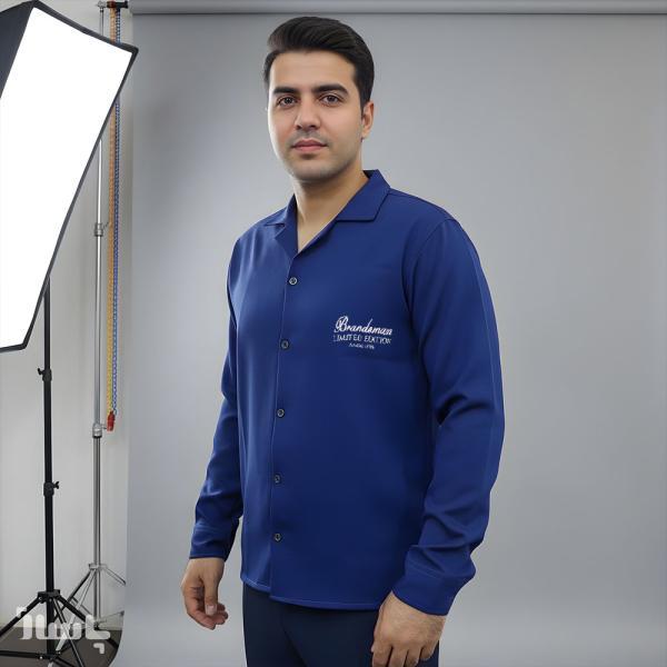 پیراهن مردانه مازاراتی آستین بلند رنگ آبی کاربنی