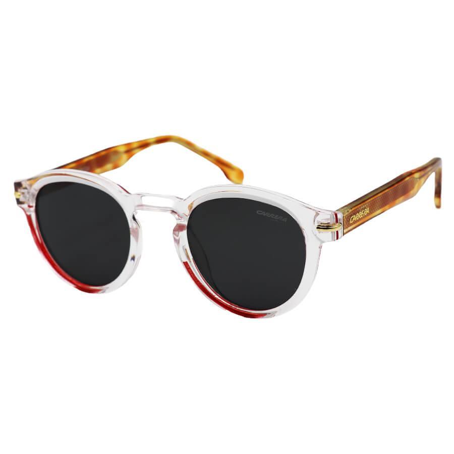 عینک آفتابی پلاریزه Carrera با فریم گرد، بی رنگ، لنز دودی تیره، دسته قهوه ای و سیم دار مدل P581006