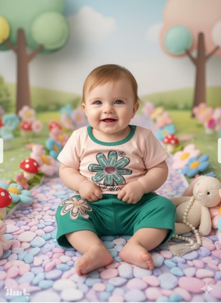 تیشرت شلوارک نخی دخترانه سایز 30 35مناسب 6تا12ماه