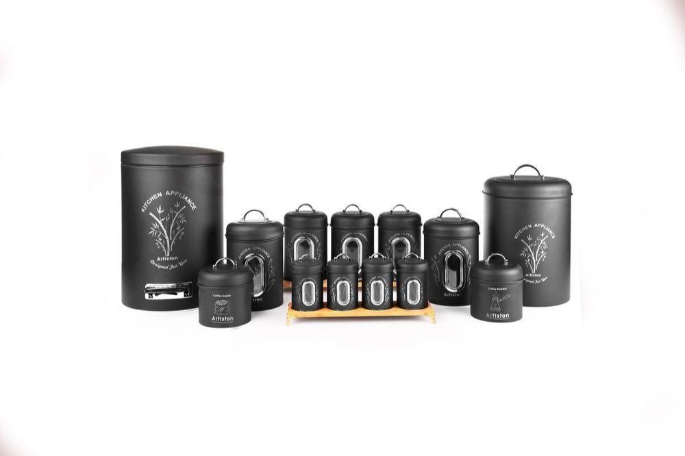 ▪️این سرویس شامل 1 عدد سطل برنج( لیتری15) ، 1 عدد سطل زباله ( 12لیتری ) ،2عدد بانکه (2 لیتری) ، 3 عدد بانکه (1.5 لیتری) ، 4 عدد ادویه پاسماوری ،2 عدد بانکه قهوه و چای دو عدد استند چوبی آرتیستون می باشد.