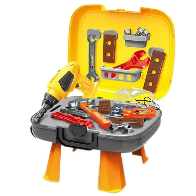 یک جعبه ی اسباب بازی مجهز و کامل که شامل میز ابزار، کیف ابزار، کوله ابزار، چمدان ابزار و کاربردهای دیگر میشود