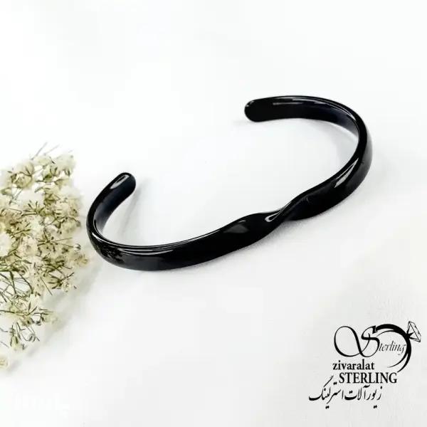 دستبند النگویی استیل مشکی طرح مارپیچ کد 19672