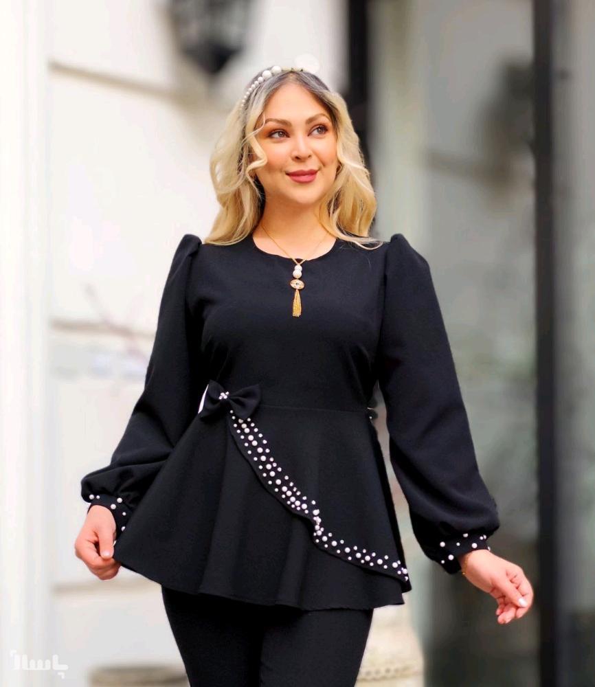 چهار تیکه شامل شومیز و شلوار و تل مرواریدی و گردنبند هدیه