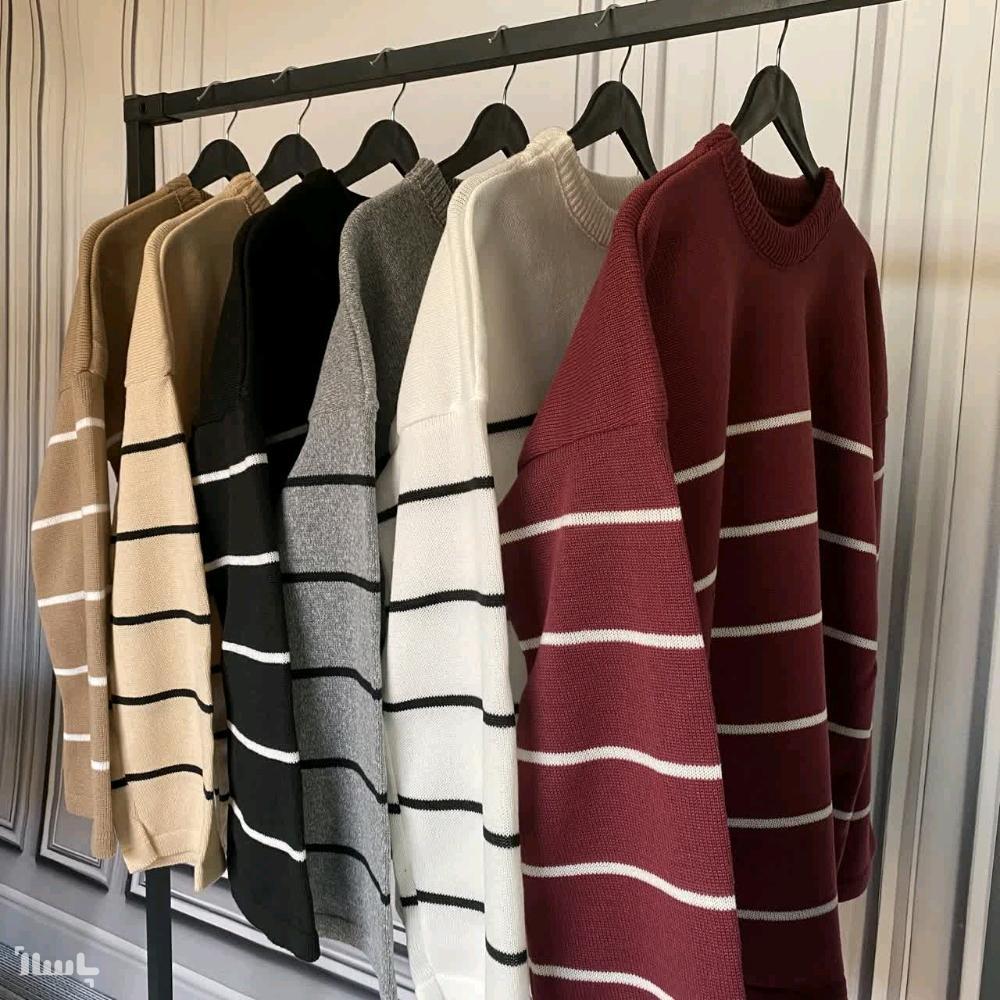 بافت راه راه پینترستی در رنگبندی: مشکی آلبالویی سفید طوسی کرم نسکافه ای موجود می باشد.