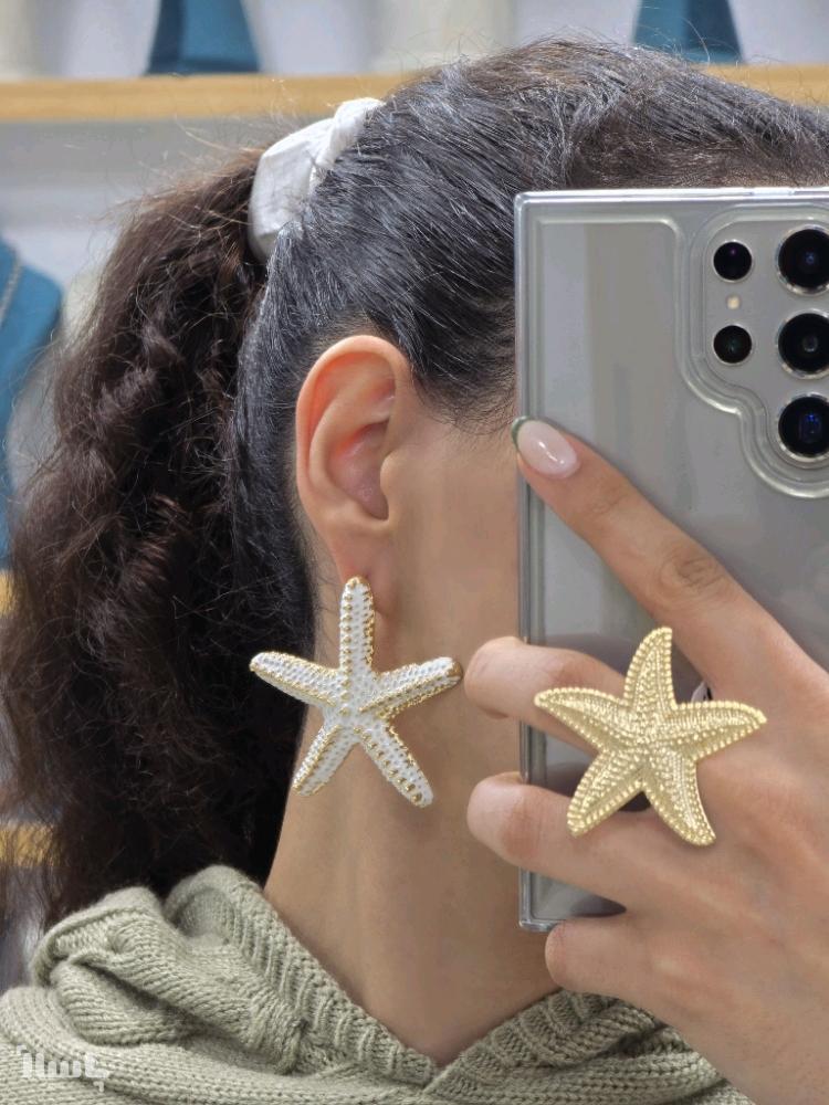 گوشواره رنانه مدل ستاره دریاییرنگ طلایی مبخ گوشواره استیل
