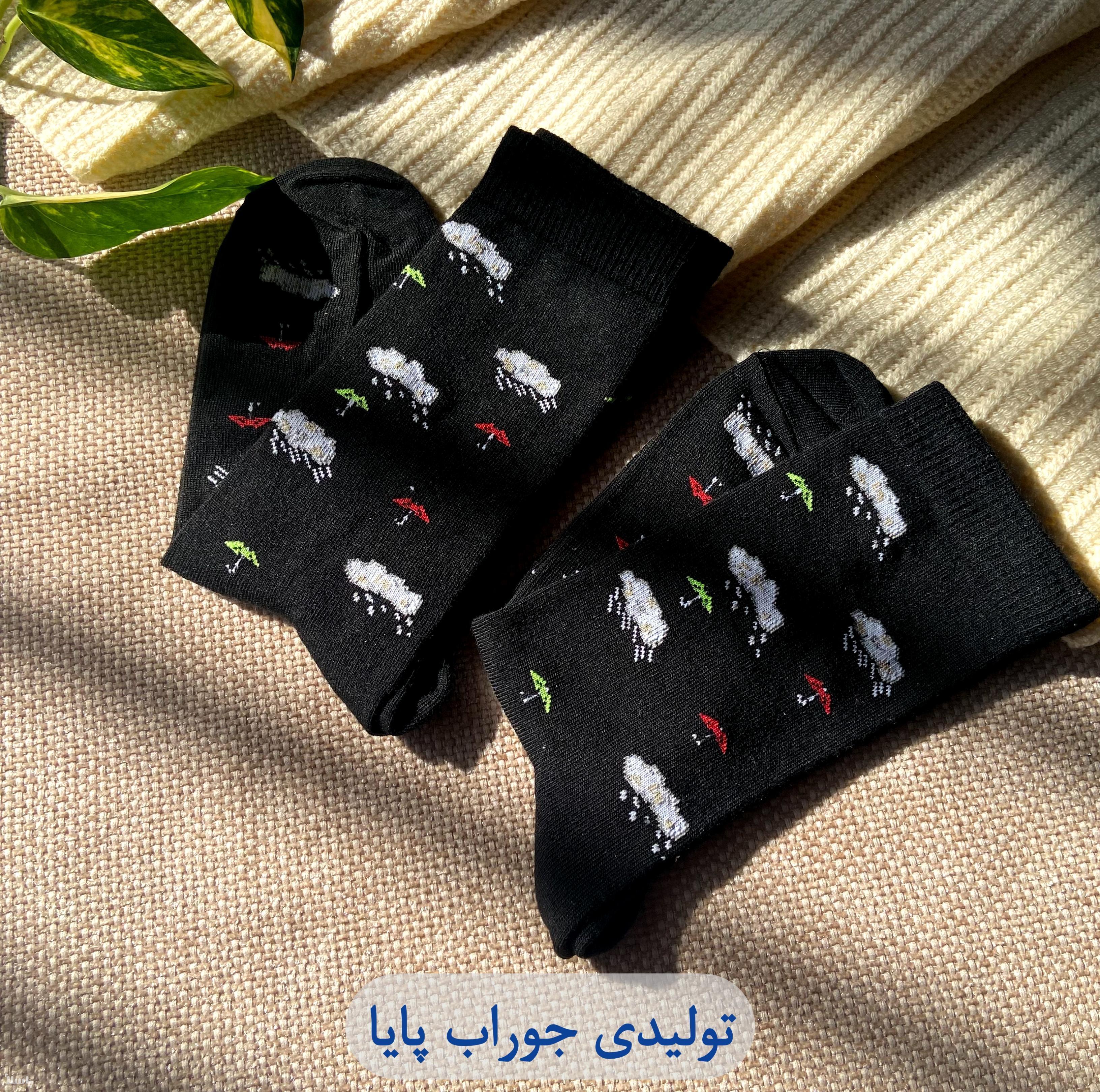 طرح چتر و ابر یک طرح کلاسیک و بسیار دوستداشتنی است که هیچوقت از مد نمیافتد و این محصول میتواند یک هدیه جذاب نیز باشد. کیفیت بالای بافت، دوام جوراب در برابر شستشوی مکرر را افزایش میدهد. برای حفظ کیفیت رنگ مشکی و بافت جوراب، توصیه میشود از آب سرد و شوینده مخصوص لباسهای تیره استفاده شود. سایزبندی: فریسایز (مناسب برای بانوان و دختران نوجوان با محدوده سایز 36 تا 41).