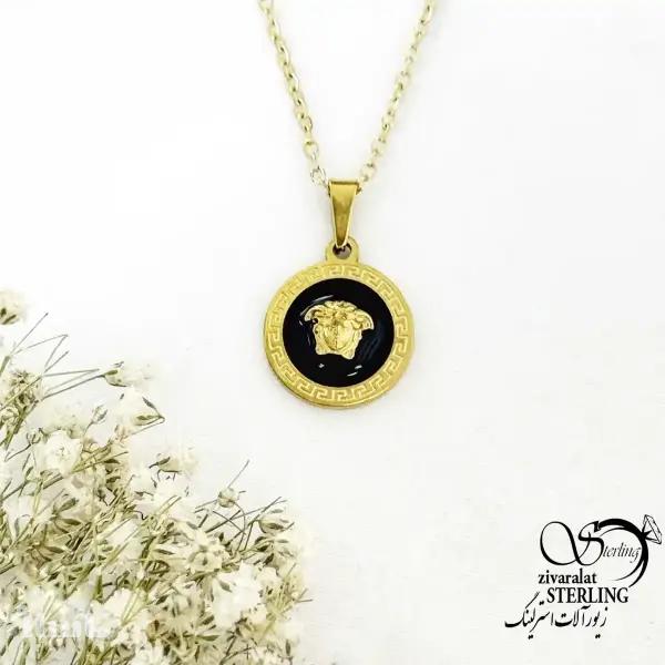 گردنبند مدوسا مشکی طلایی برند استیل کد 20512