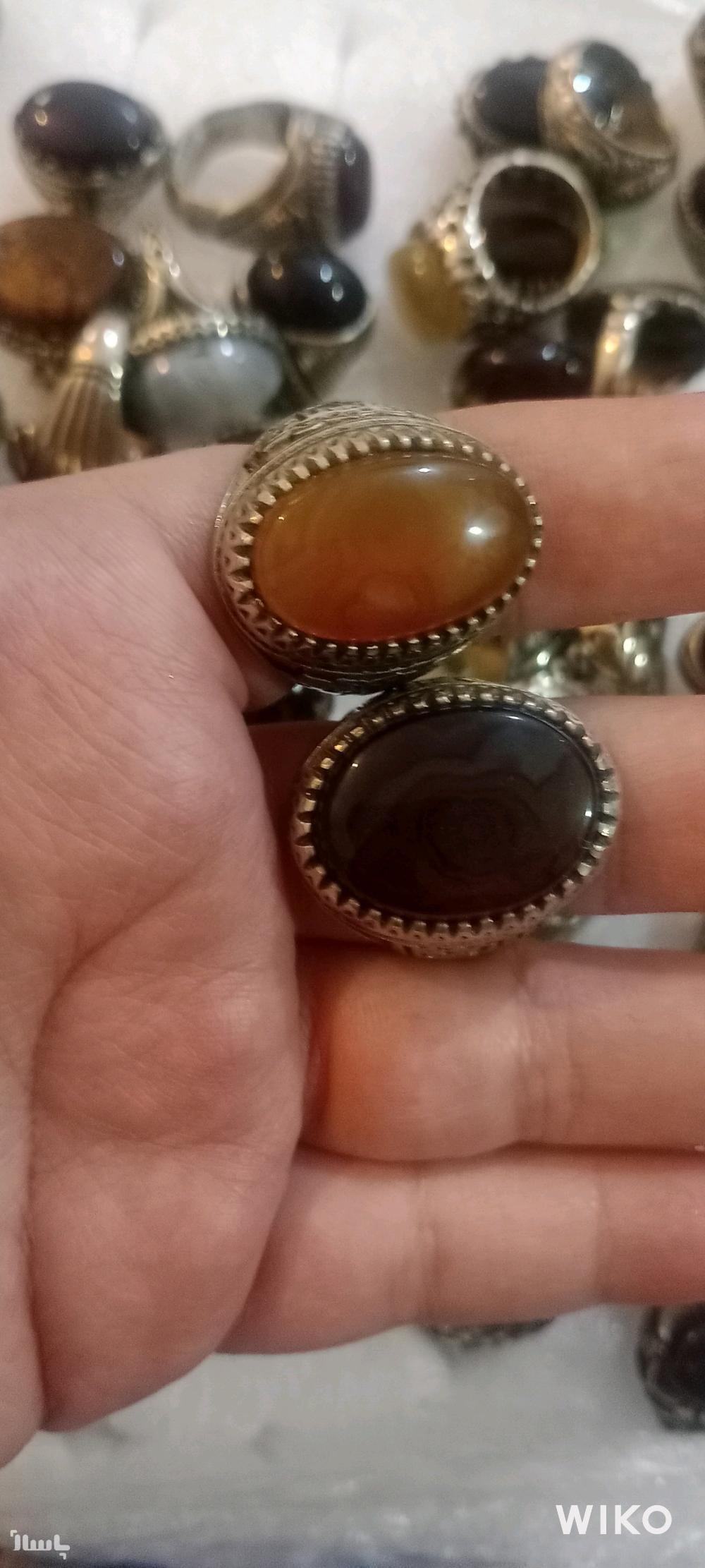 جفت انگشتر عقیق شرف الشمس و عقیق مصور غول پیکر قدیمی نقره عیار 81