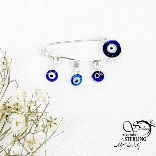 سنجاق سینه با آویز چشم زخم و نقره 925 عیار کد 17335