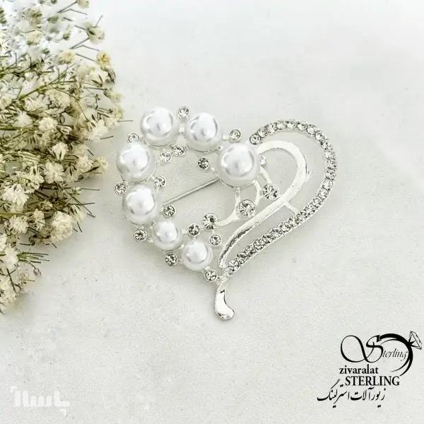 سنجاق سینه قلب مرواریدی طرح جواهری کد 20128