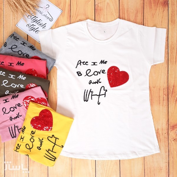 تیشرت نخ پنبه رنگ ثابت بدون پرزدهی طرح قلب پولکی
