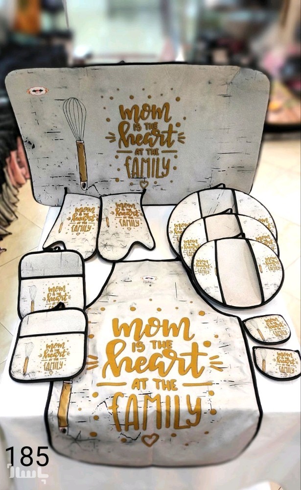 سرویس دمکنی و پیشبند 11 پارچه آشپزخانه عروس کارماهوم کد 185 (دم کنی)