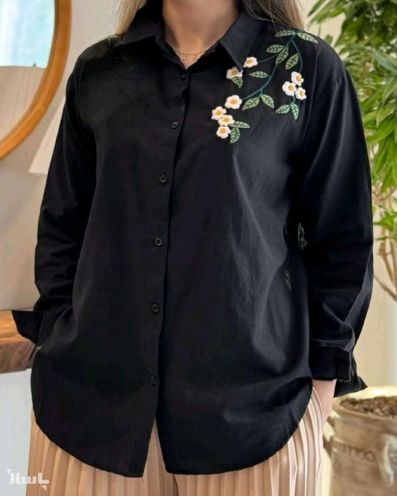 شومیز مانتویی شانتون گلدوزی شده مدل شکوفه