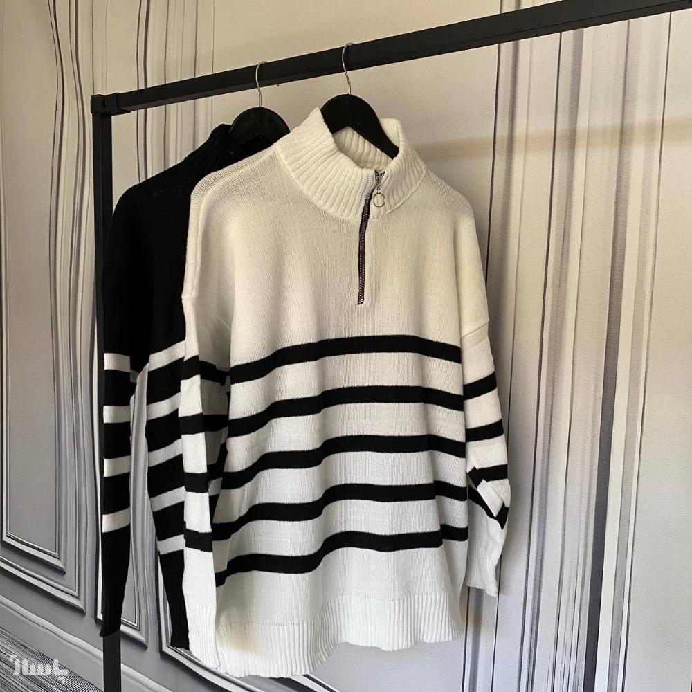 بافت دورس یقه زیپدار راه راه
