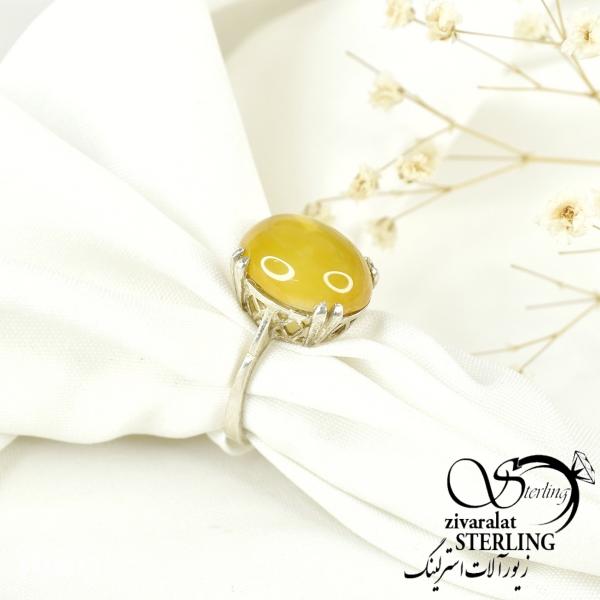 انگشتر رکاب نقره طرح دار با سنگ(شرف الشمس) کد 9961
