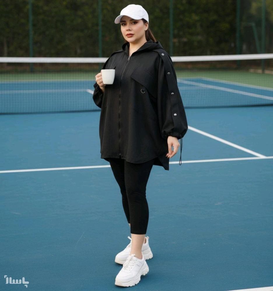 جلوی لباس زیپ دارد . کلاه دارد چسبیده به لباس