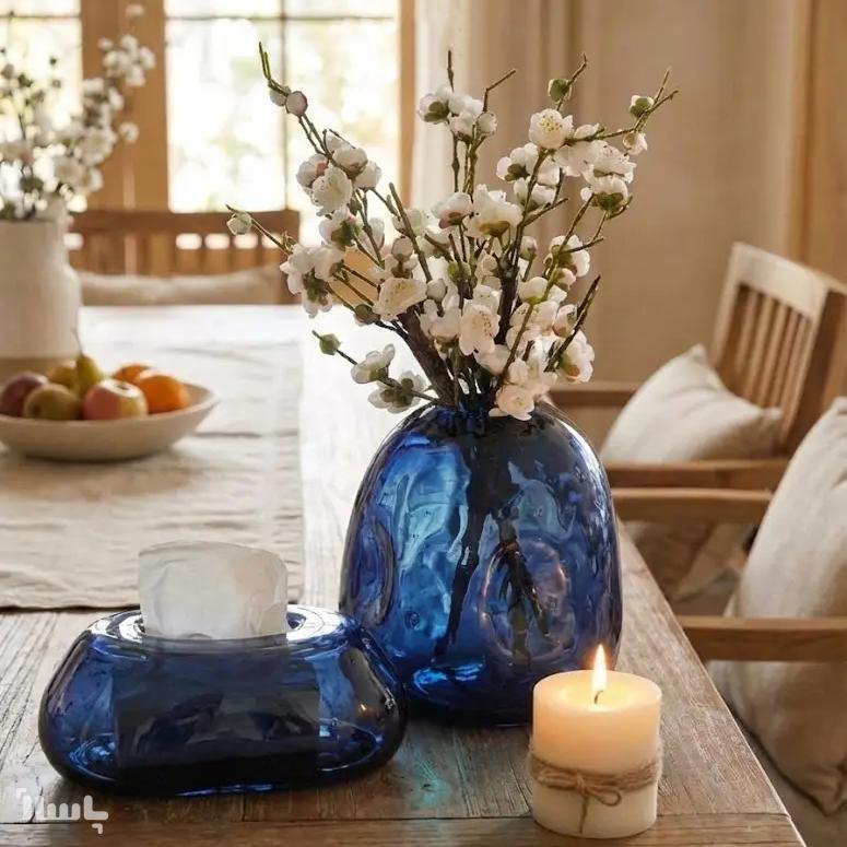 ست گلدان و جا دستمالی تویی بلور؛ امضای شیشهگری هنری در منزل شما