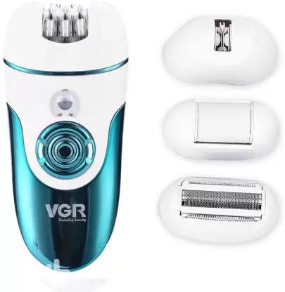 اپیلاتور حرفه ای 4 کاره VGR V-700 برای صورت، پاها، زیربغل و ناحیه بیکینی با پاک کننده پینه برای استفاده مرطوب و خشک 50 دقیقه زمان اجرا شارژ سریع باتری لیتیوم یون 2X500 میلی آمپر ساعت