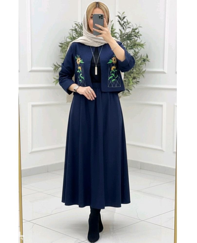 ست کت دامن مجلسی زنانه مدل شیدا جنس مخمل کبریتی درجه یک +گلدوزی
