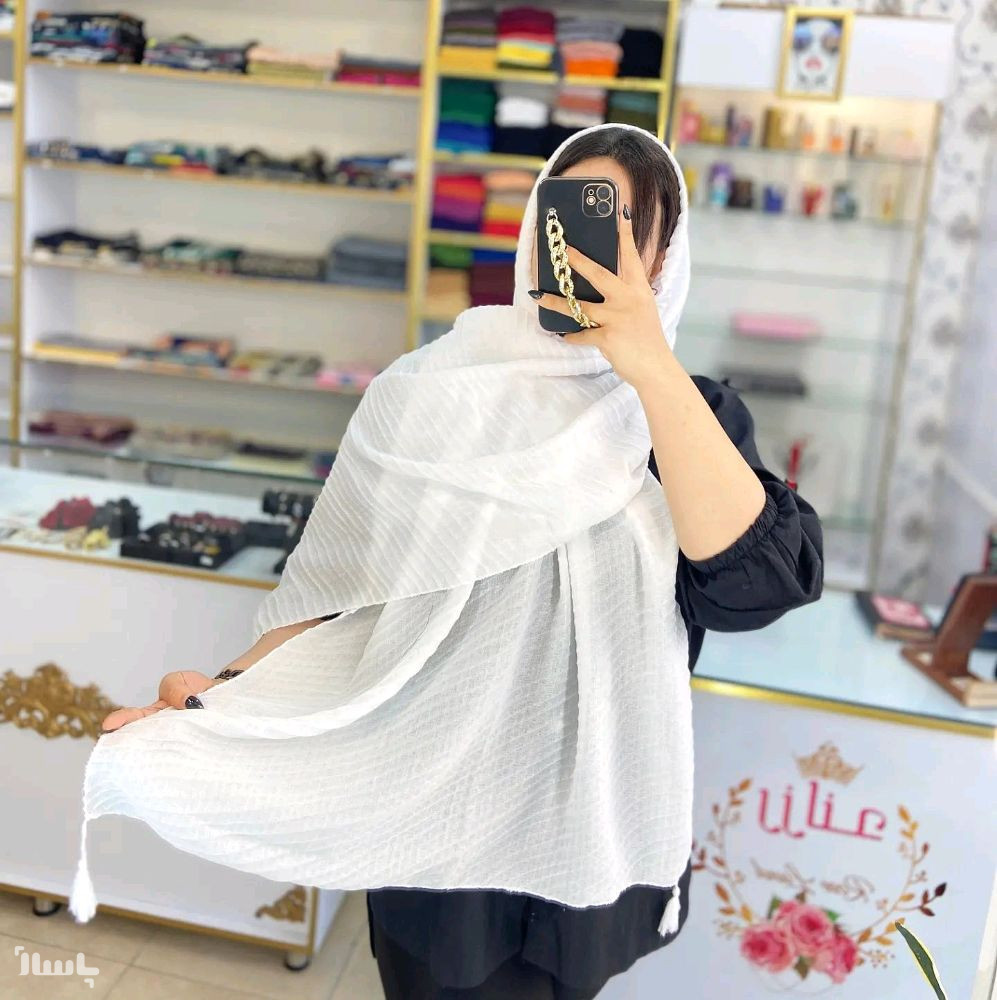 شال نخی منگوله دار پاییزه سفید و مشکی
