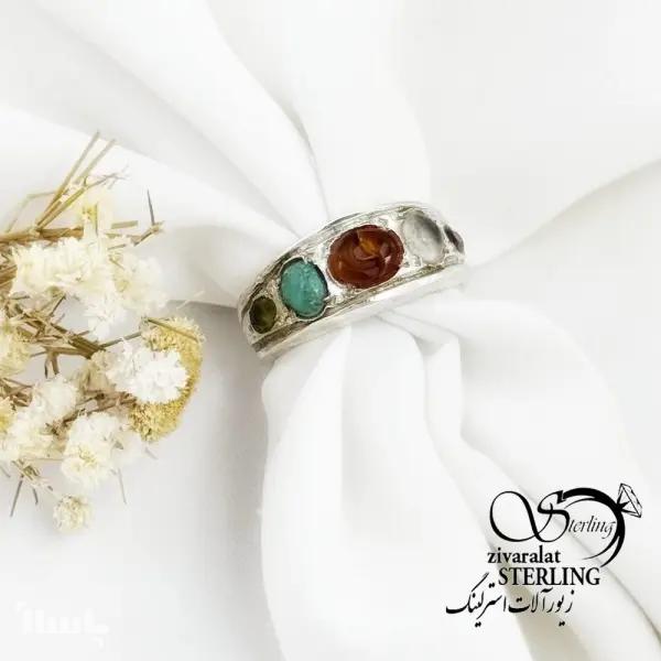 انگشتر نقره 5سنگ با حرز امام جواد پشت بسته کد 18225