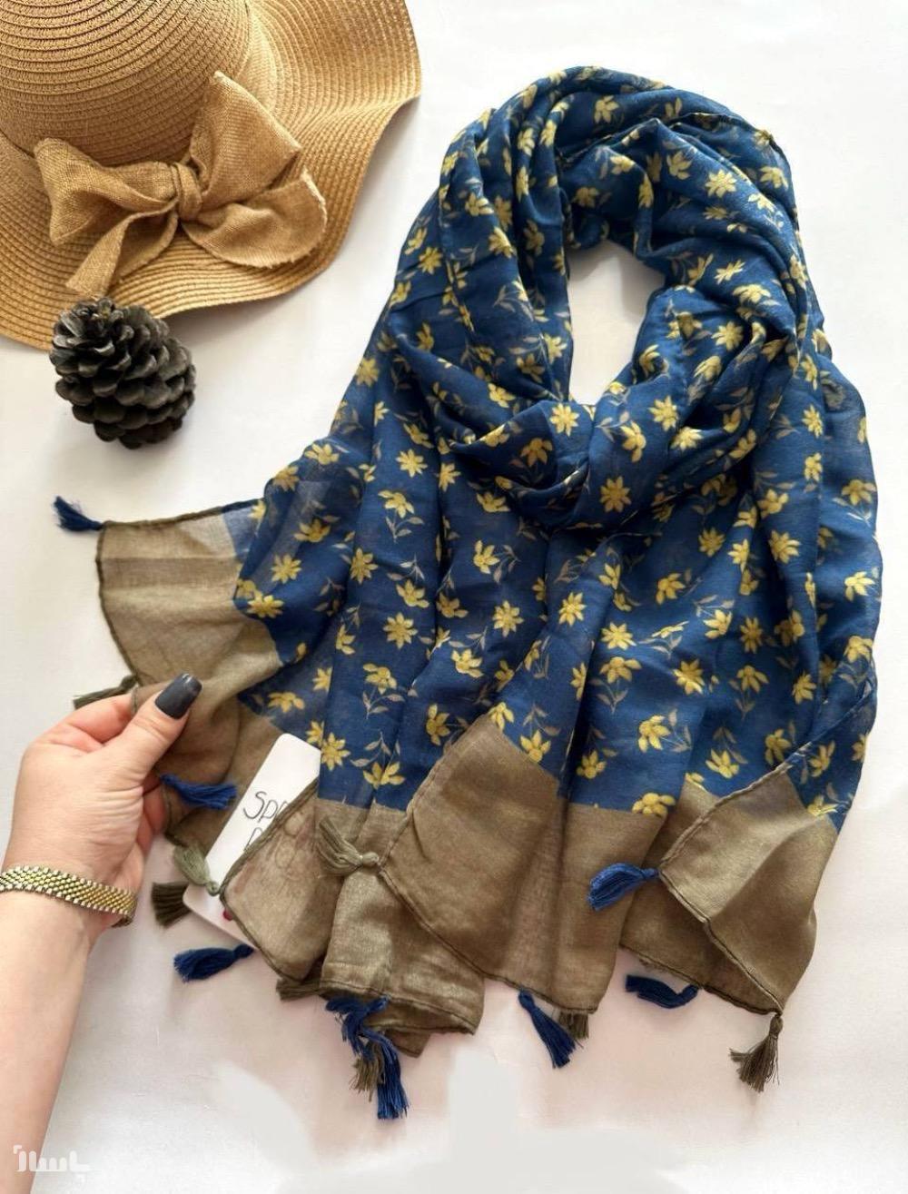 شال نخ پنبه TRF وارداتی دو رنگ زمینه سرمه ای