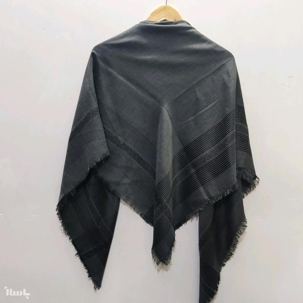 روسری نخی طوسی تکرنگ دور حاشیه لمه