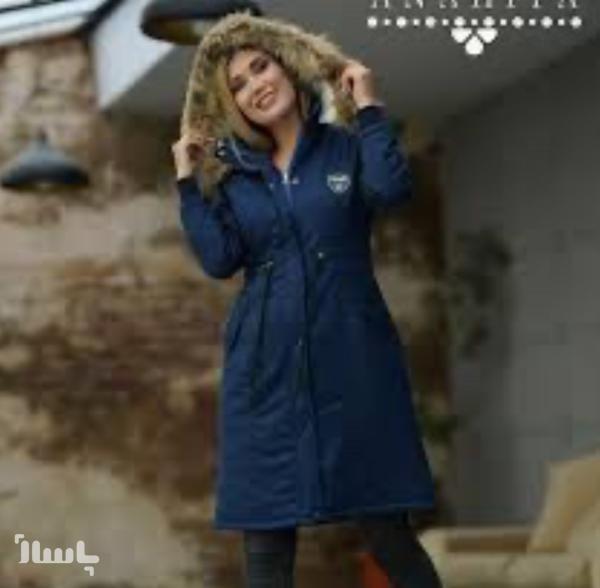 کاپشن سرمه ای شیک داخل کلاه خز و داخل پالتو پشم شیشه کار شده روش حالت کتان داره