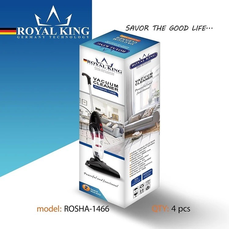 جارو عصایی رویال کینگ مدل 1466 با طراحی سبک و ارگونومیک، حملونقل آسانی دارد. این دستگاه فضای کمی اشغال میکند و به راحتی در گوشهای از خانه یا کمد نگهداری میشود. همچنین طراحی عصایی آن باعث شده که کاربر بتواند بدون خمشدنهای مکرر، بهراحتی کار نظافت را انجام دهد.