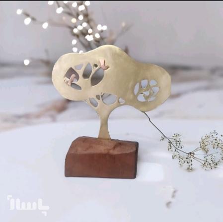 دکوراسیون درخت برنجی پرنده های مسی و پاسخ از چوب عناب