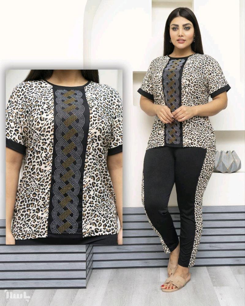 قد تونیک 65️ دورسینه بدون کشسانی 120️ قد آستین از یقه 32️ قد شلوار 90️ پشت لباس پلنگی️