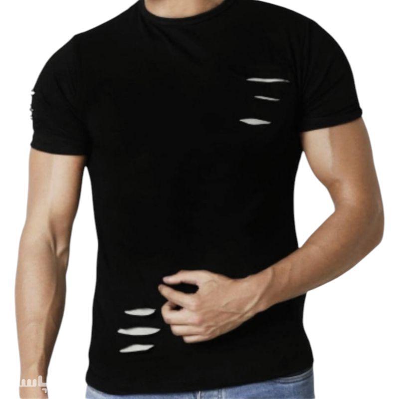 تیشرت مشکی مردانه یقه گرد زاپ دار جنس 100% پنبه ترک