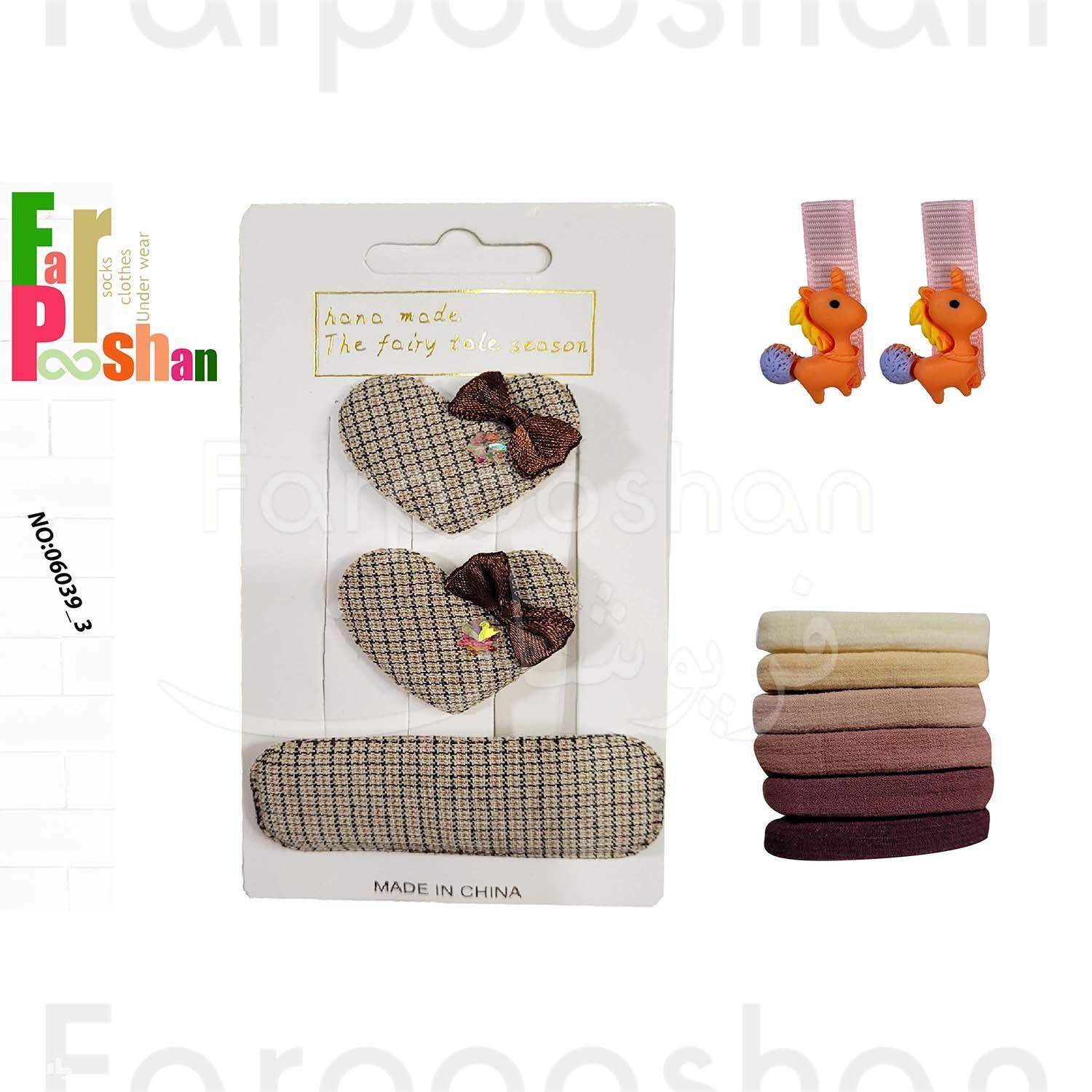 ست کش و گیره مو دخترانه مدل پارچه ای قلبی کد 3-06039 مجموعه 11 عددی