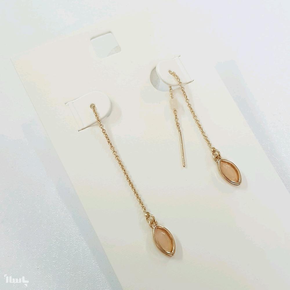 گوشواره بخیه ای طلایی آویز دار ، فوق العاده زیبا و ظریف