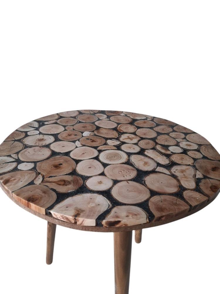 میز عسلی با تیکه های چوب زردالو و خمیر چوب