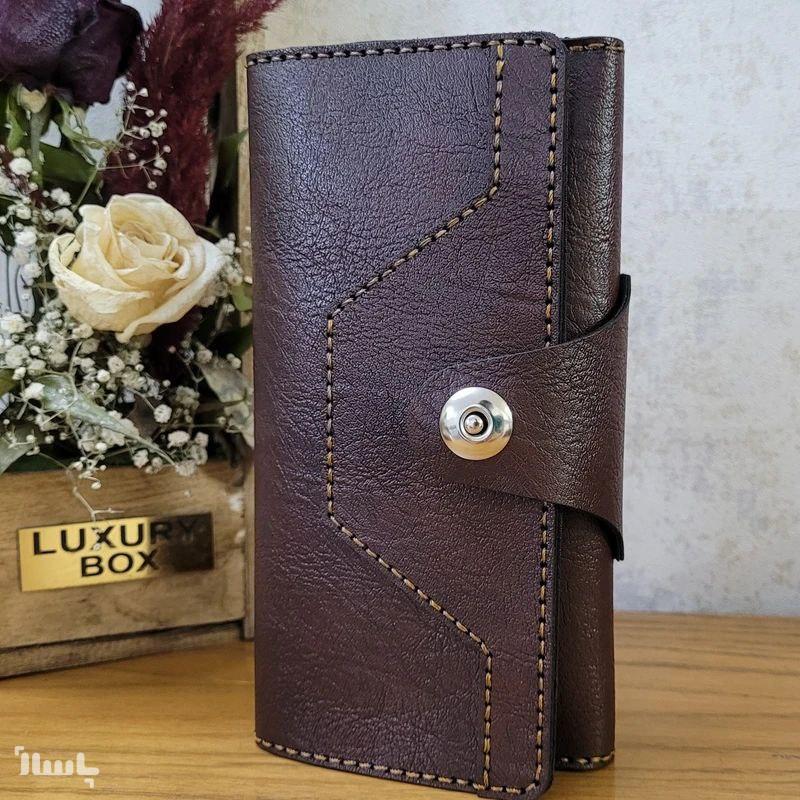 کیف پول و موبایل سه لت با قفل دکمه ا دست دوز جنس چرم سوگو ارسال رایگان