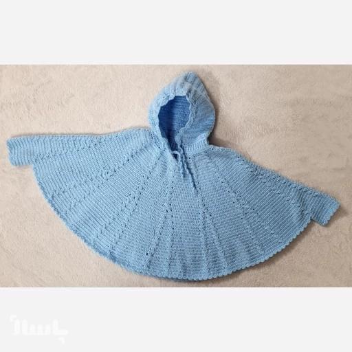 شنل آستین دار رنگ آبی دستبافت مناسب حدود 2 تا 4 سال