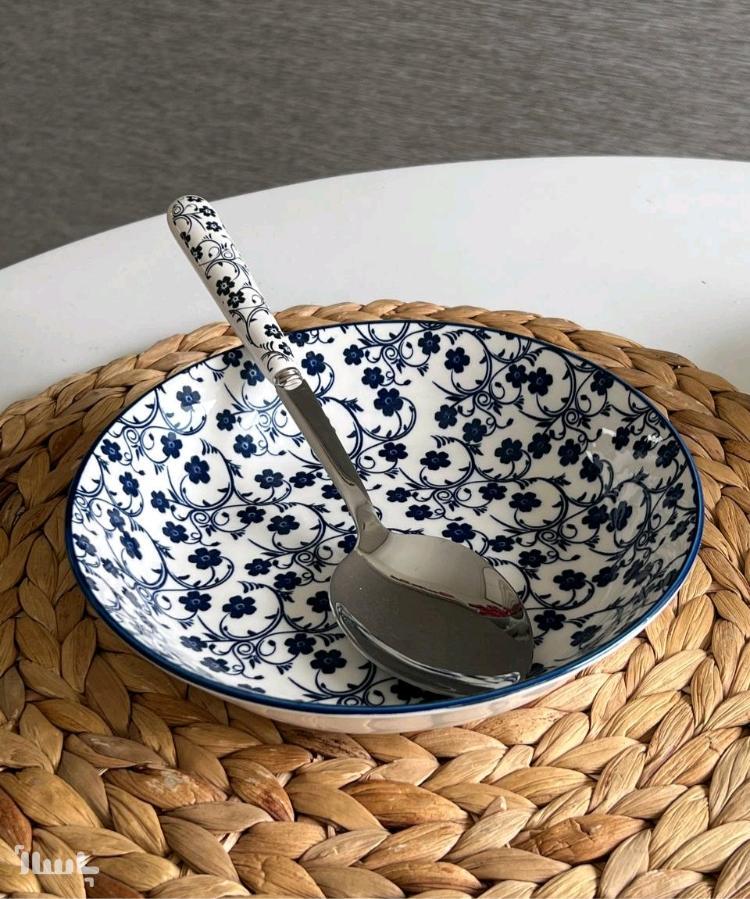 قاشق خورشت دسته سرامیکی دنی هوم طرح گل آبی