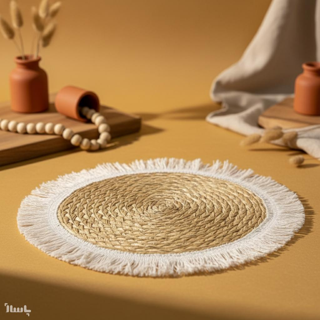 رومیزی/زیرگلدانی حصیری دستبافت مدل بوهو ریشهدار