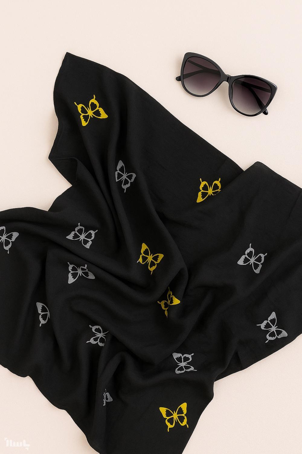 مینی اسکارف 70 در 70 مشکی طرح پروانه