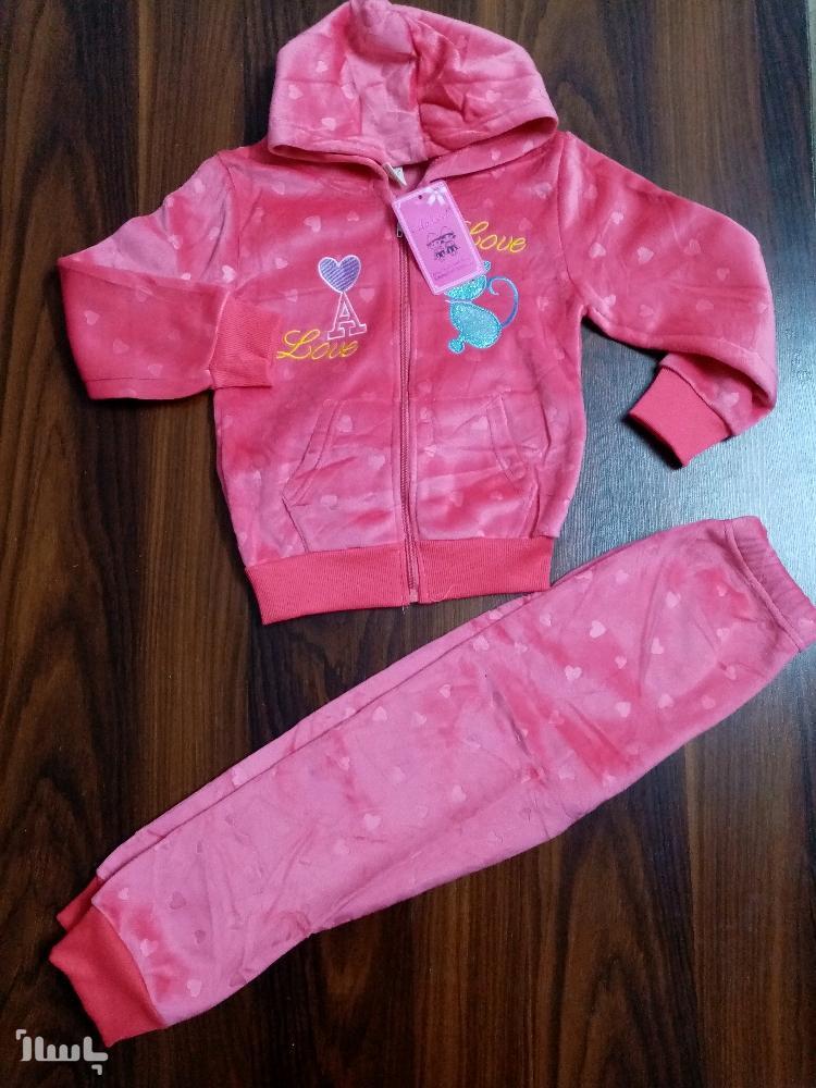 ست هودی شلوار مخمل طرح قلبی دخترانه