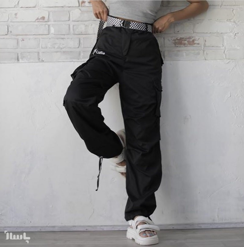 شلوار کارگو مشکی 6 جیب دخترانه lufia