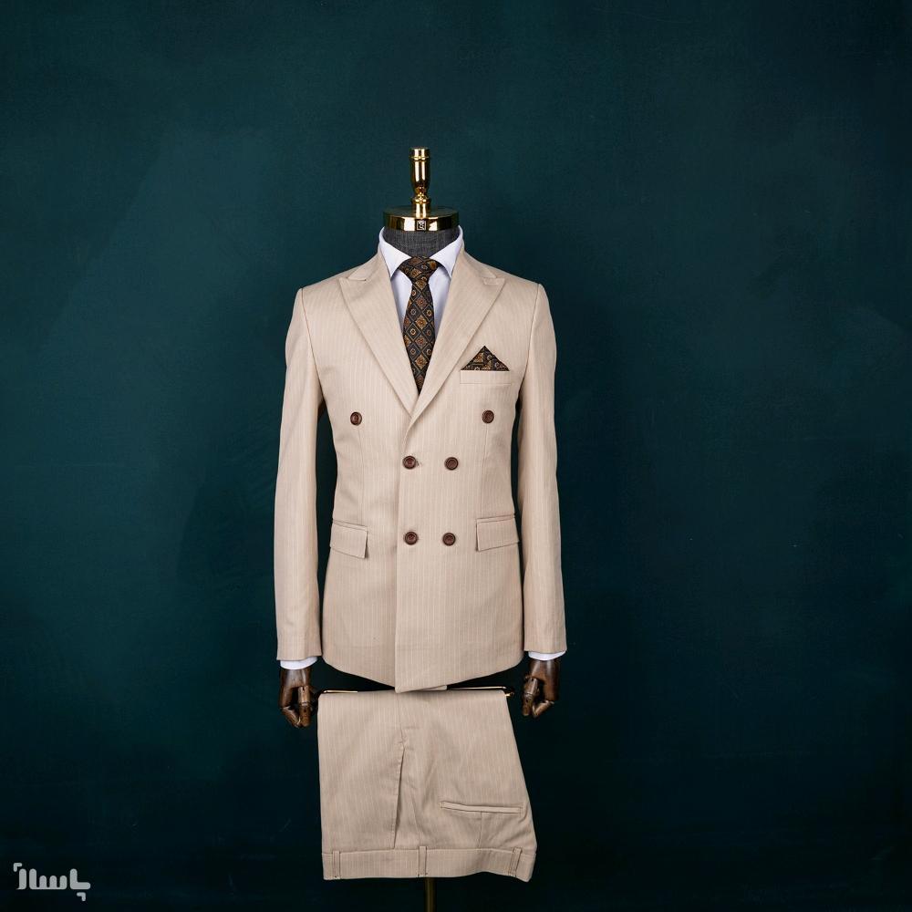 کت شلوار مردانه دبل برست دیپلمات کرم