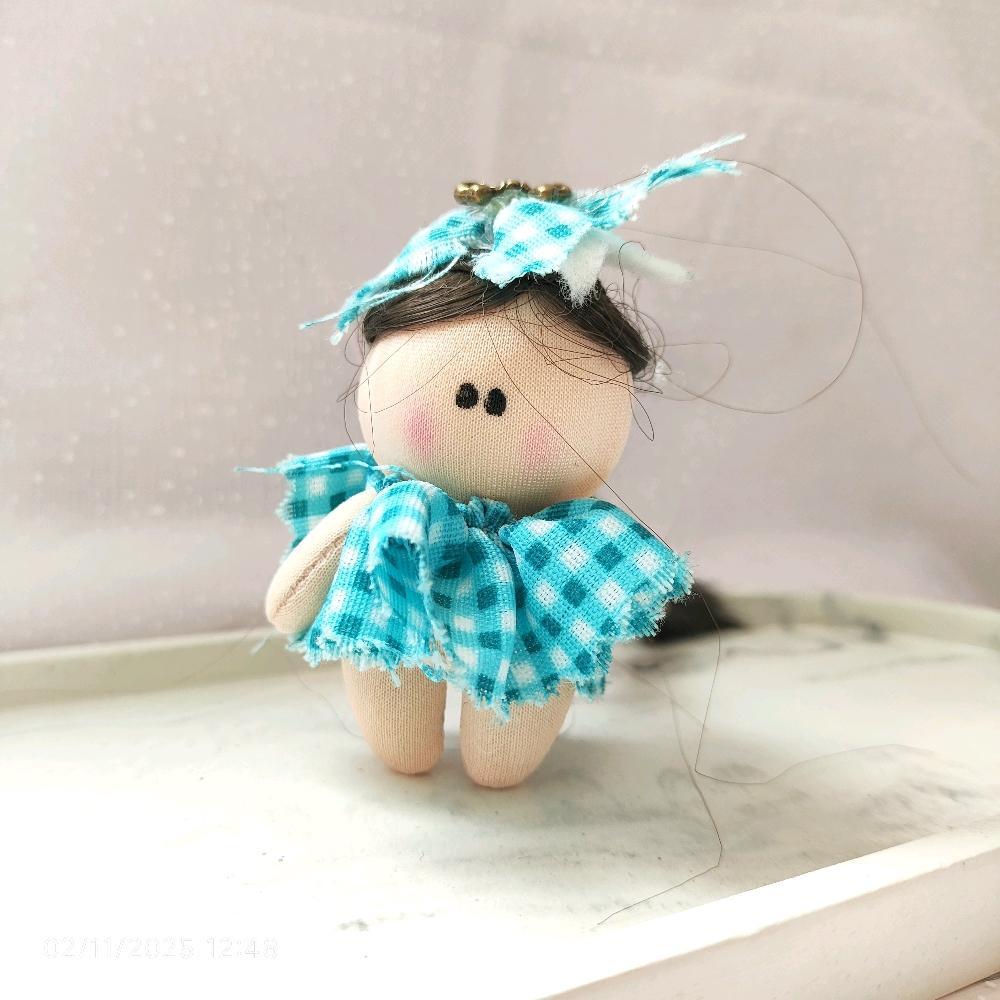 عروسک دستساز کوچولو با ظاهر بانمک و پارچهی چهارخانهی آبی، حس نوستالژی و لطافت خاصی داره. برای آویز کولهپشتی یا آویز جلو ماشین