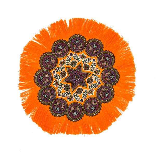 رومیزی پته دوزی گرد رنگ نارنجی مدل قهر و آشتی 45 سانتی