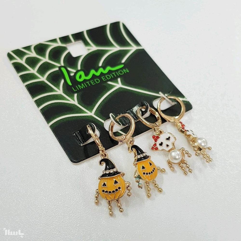 پک دو جفتی گوشواره قفلی آویز کدو تنبل و اسکلت ، کار فوقالعاده زیبا و پر از جزئیات ، از سری لیمیتد ادیشن iam