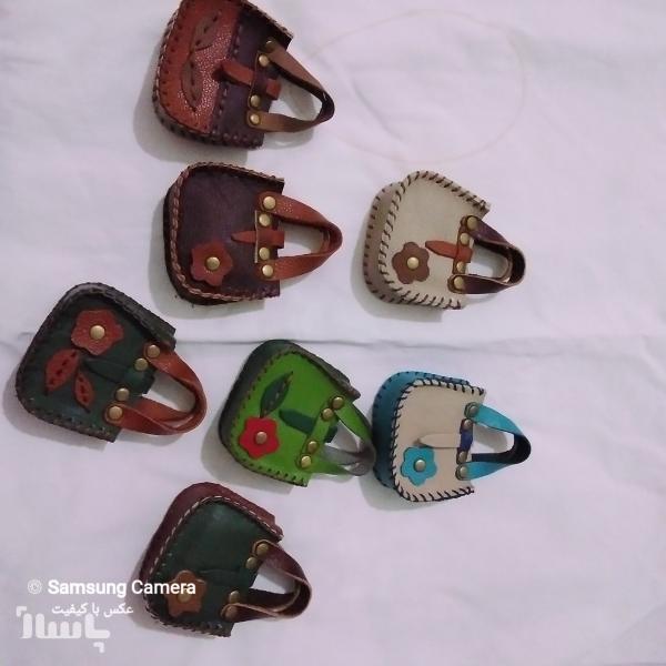 کیف فانتزی تمام چرم مناسب برای جای هنذفری و خوردو ریز و آویز روی کیف و یا ماشین