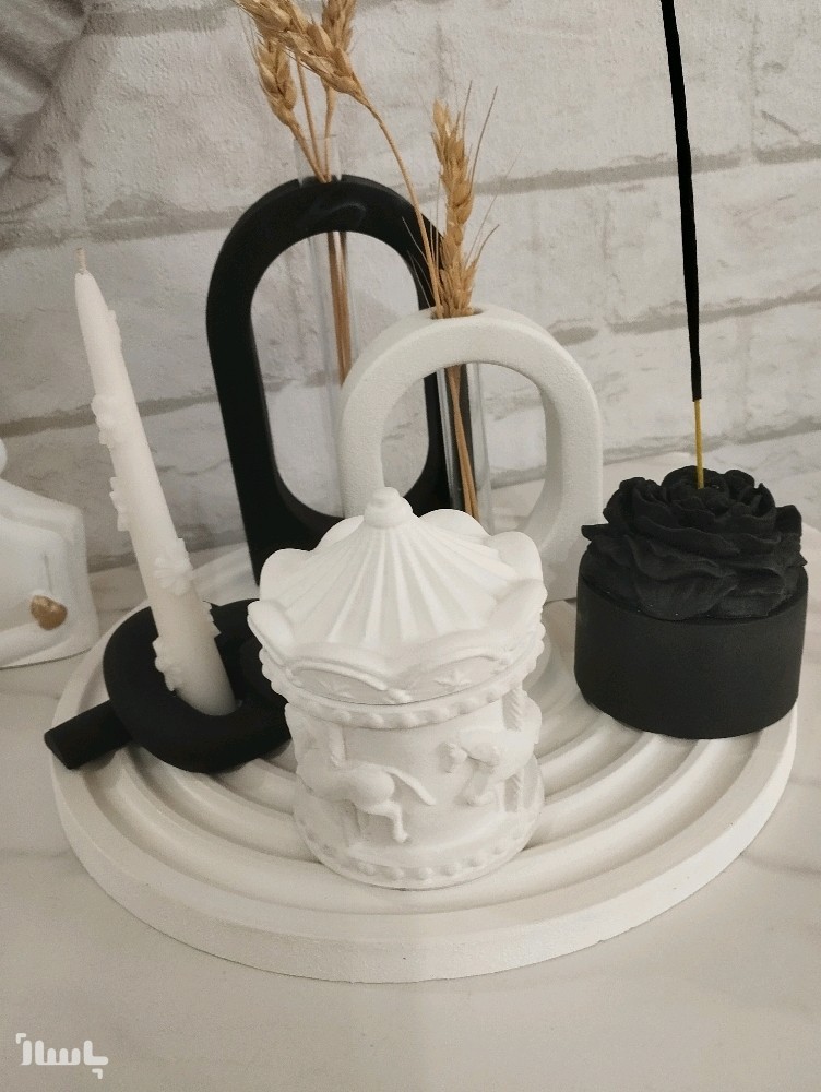 ست دکوراتیو جنس سنگ مصنوعی سفید و مشکی